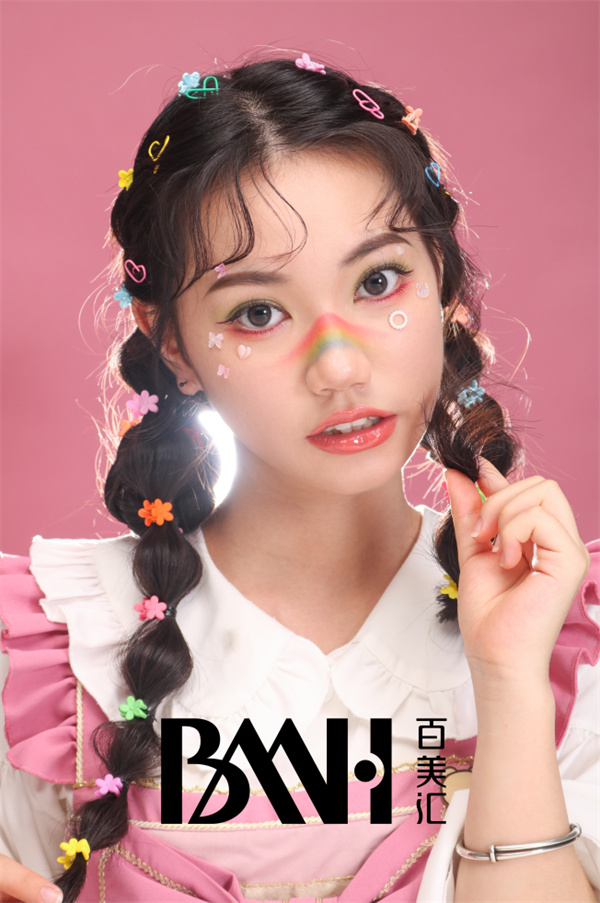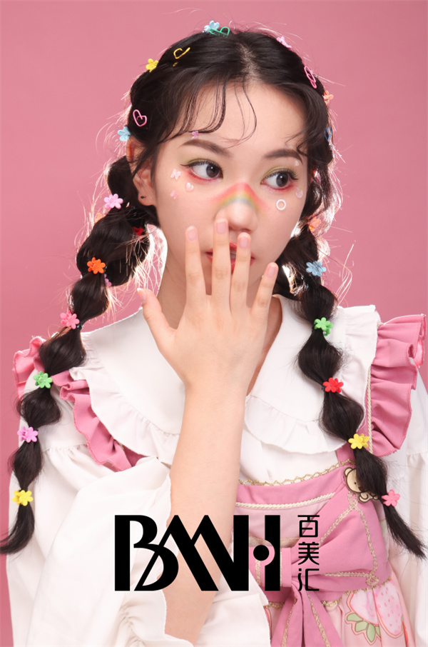 妆容主要以彩虹、蝴蝶和爱心作为元素