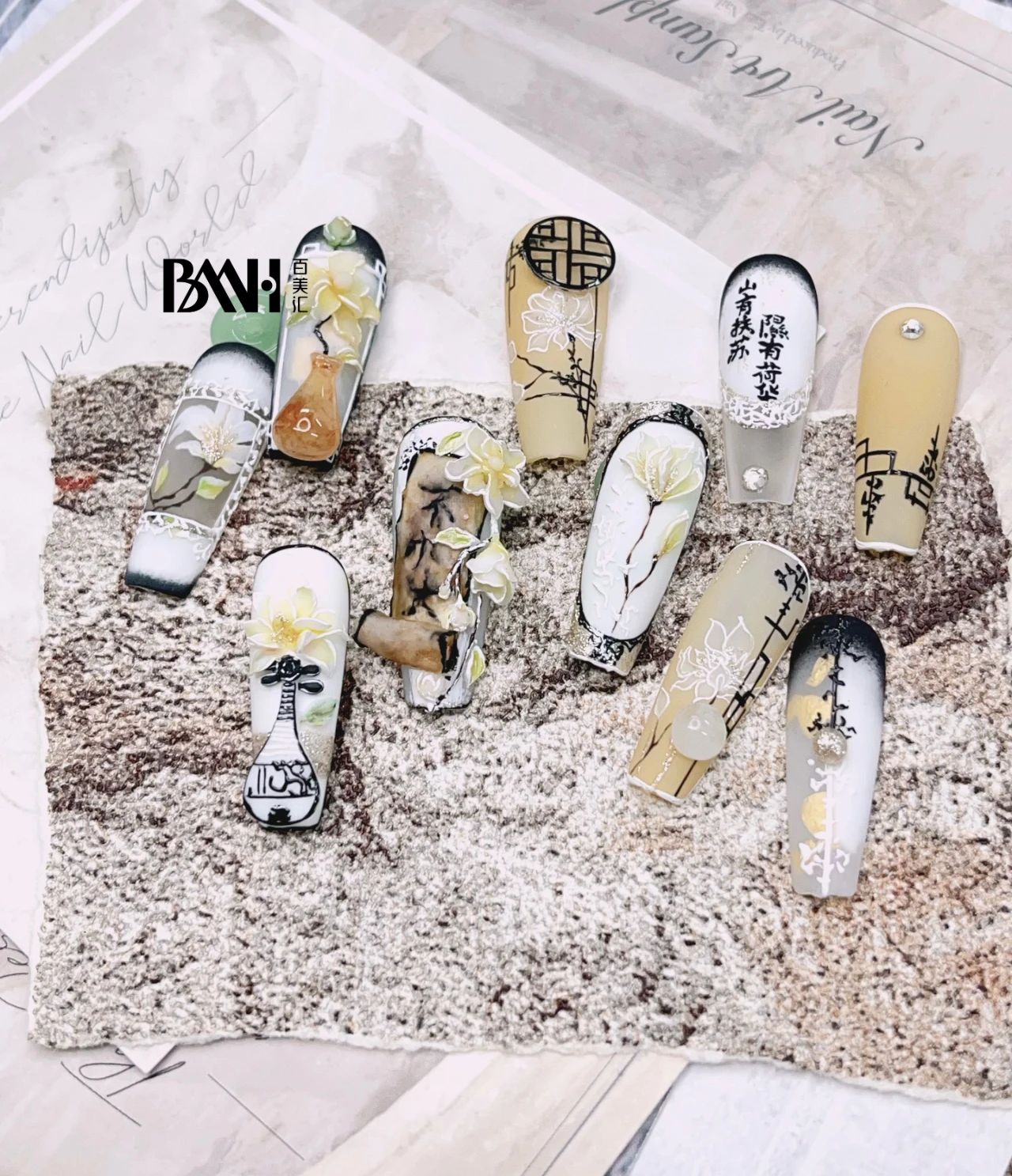 美甲设计师以淡雅的玉兰花为主题